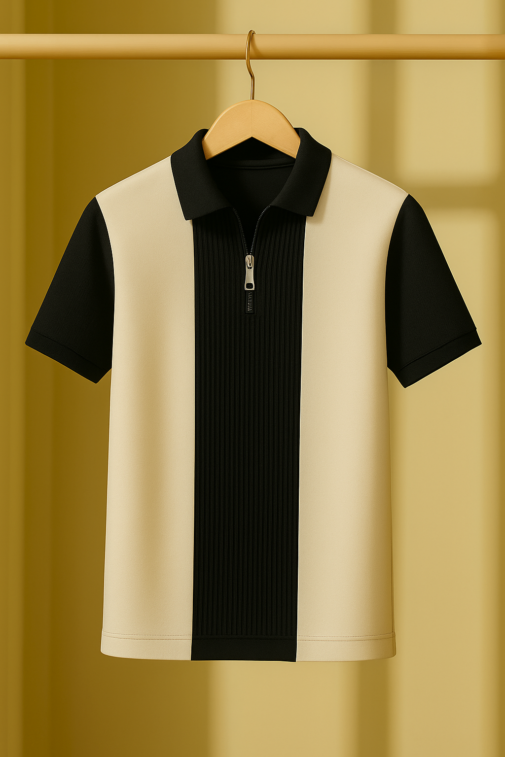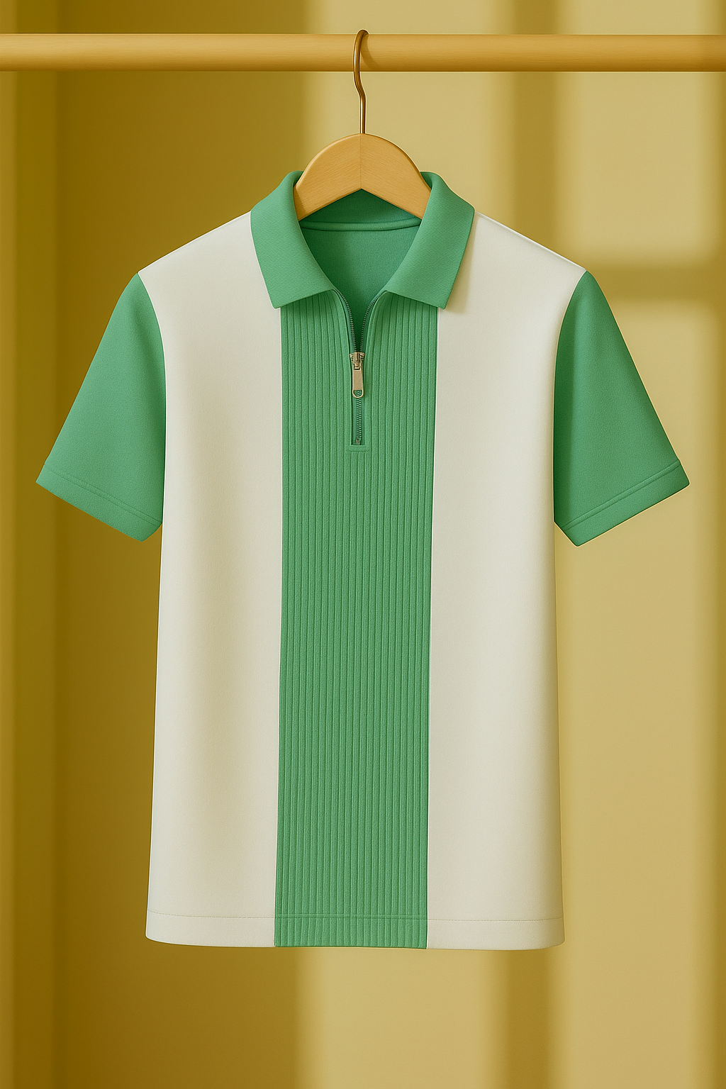 👕 Design: Contrast color-block with ribbed vertical panel 🎨